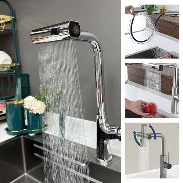 Naša večnamenska kuhinjska vrtljiva pipa, izdelana iz vrhunskih materialov, se ponaša z vzdržljivostjo in dolgoletnim zanesljivim delovanjem, zato je pametna naložba za vsako kuhinjo.