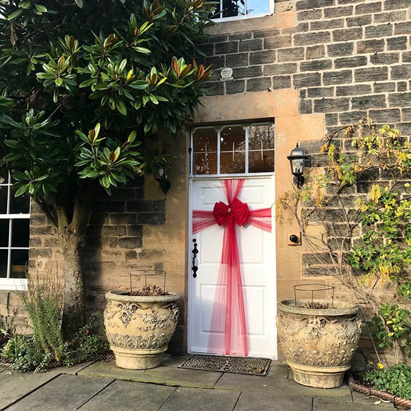 Okrasite svoja vrata z našimi razkošnimi dekoracijami s pentljami. S 750 cm dolgim trakom lahko svojim vhodnim vratom kreativno dodate čudovit praznični pridih. Ne glede na to, ali gre za božič, poroko ali otroško praznovanje, RUBYBOW bo polepšal vzdušje.