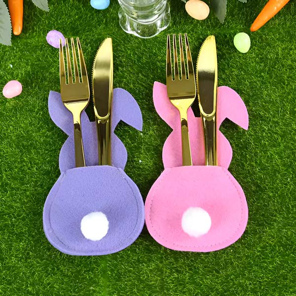 Naredite velikonočne obroke posebne s čudovitimi držali za pribor v obliki zajčka, ki prinašajo toplino in veselje na vašo mizo.