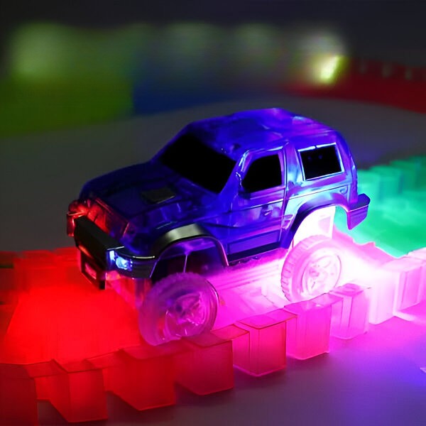 Opazujte, kako se steza in avto v temi prižgeta in ustvarita očarljiv spektakel, ki izboljša igralno izkušnjo.