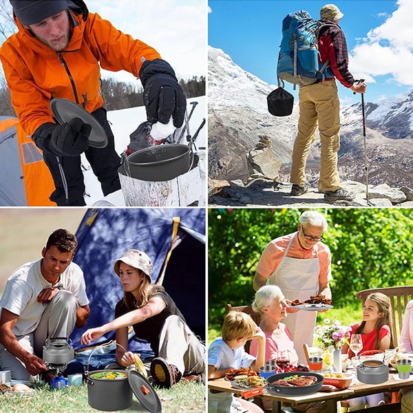Kuhajte kjerkoli s tem vsestranskim, kompaktnim in lahkim kompletom posode, popolnim za dom, potovanja in pustolovščine na prostem.
