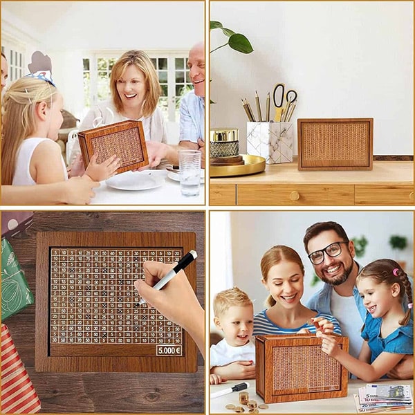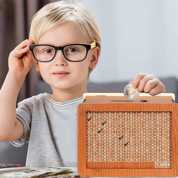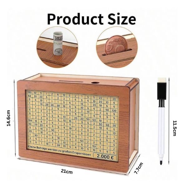 1 x COINSAVE Lesena škatla za varčevanje z denarjem