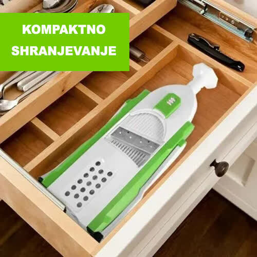 Zložljiva zasnova prihrani prostor, zato je odličen za vsako velikost kuhinje. Omogoča tudi hitro in varno pripravo sadja in zelenjave različnih oblik!
